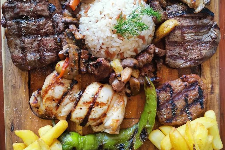 biftek,kuzu şiş,ızgara tavuk,köfte 2 kişilik servis edilir.piav yada patates kızartması,köz biber,köz domates,sebze ile servis edilir. Steak, lamb skewer, grilled chicken, meatballs are served for 2 people. Served with piav or french fries, roasted peppers, roasted tomatoes, vegetables.