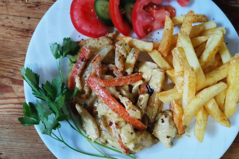 ev yapımı 200 gr köfte pilav yada patates kızartması,köz domates,köz biber sebze ile birlikte 200 gr meatballs with rice and french fries, roasted tomatoes, roasted peppers and vegetables